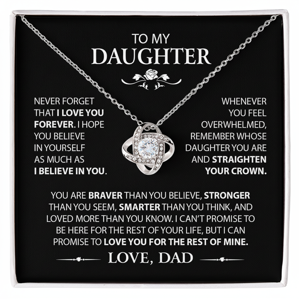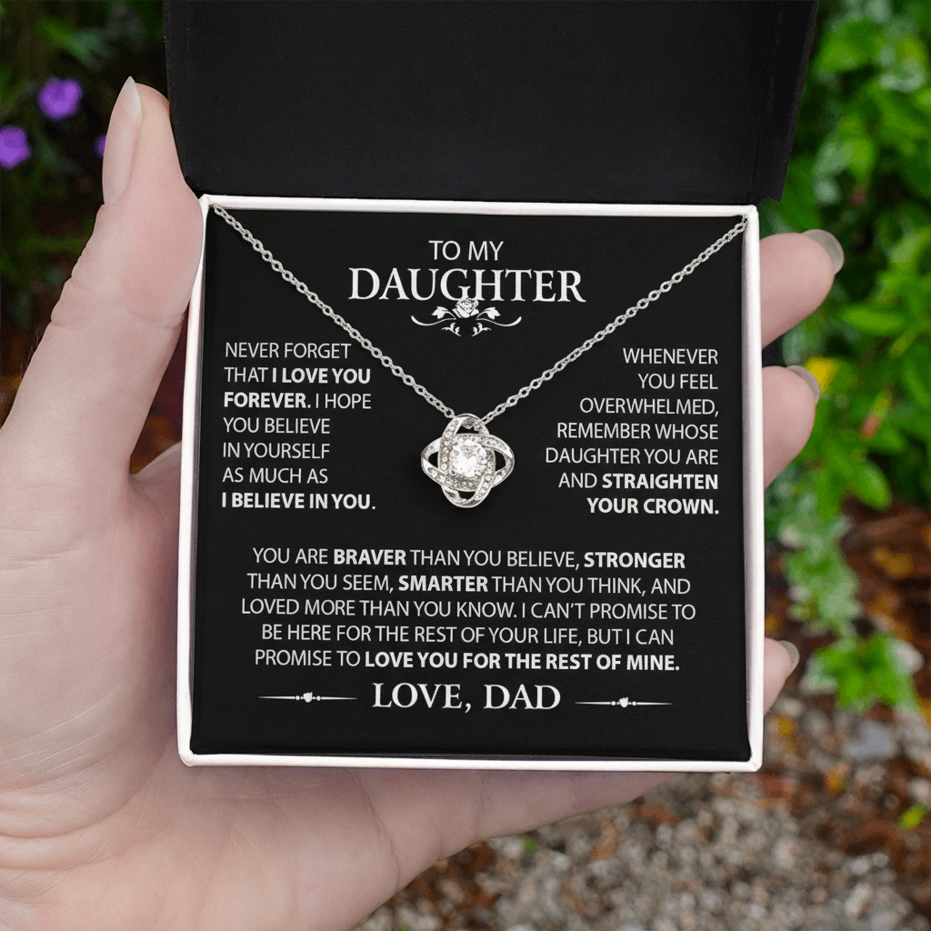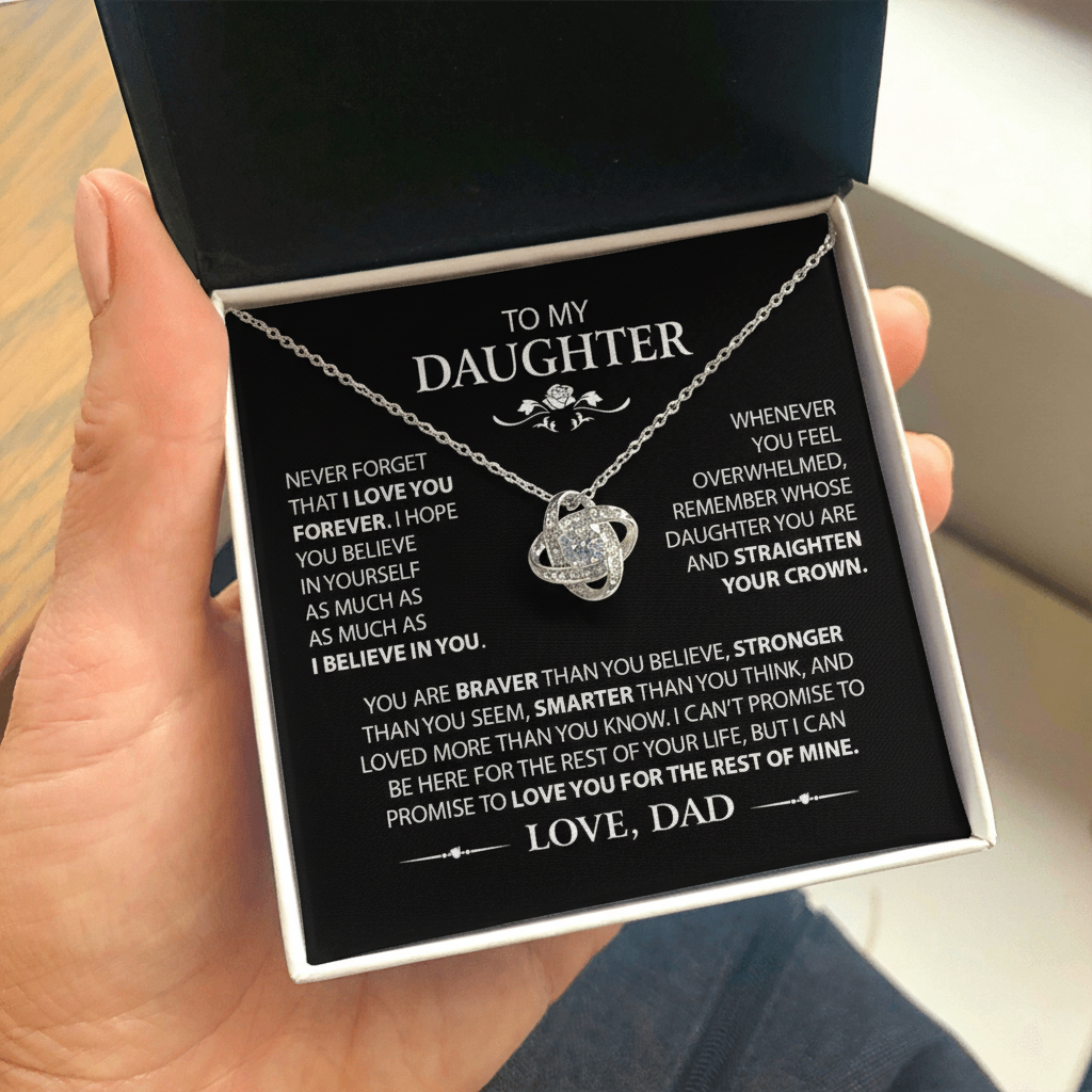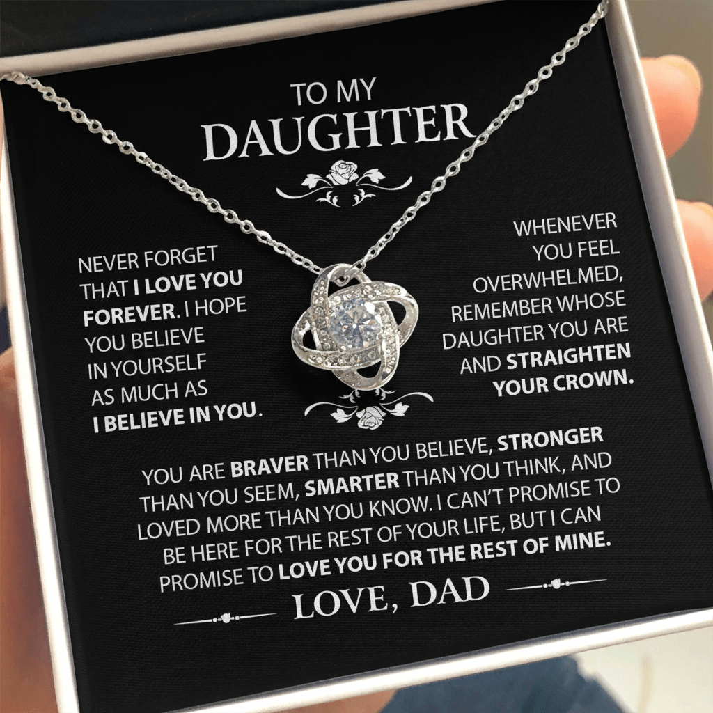 The Love Knot Necklace represents an unbreakable bond between Daddy and Daughter. This symbol of eternal love is a forever favorite and trending everywhere. Surprise your Daughter with this gorgeous gift today!
